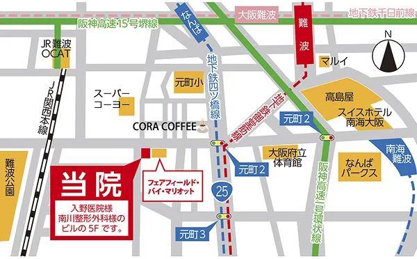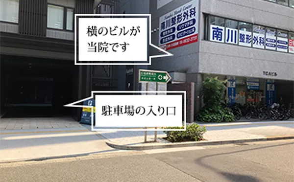 駐車場は、医院真横のフェアフィールド・バイ・マリオット大阪難波ホテル併設の立体駐車場をご利用いただけます。元町2丁目交差点付近からホテル敷地内へお入りください。