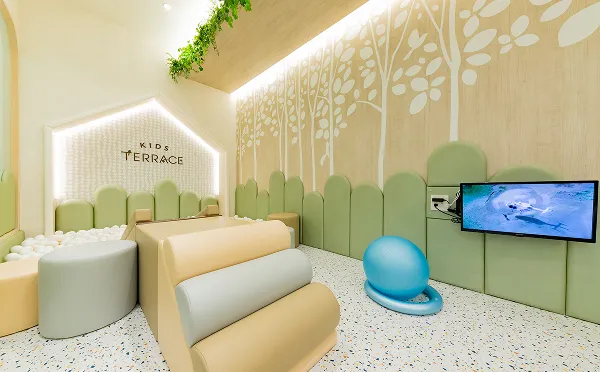 院内にはボールプールや滑り台を備えたキッズスペースを完備。遊びながら待てる環境で、お子さまも保護者さまも安心して過ごせる工夫をしています。