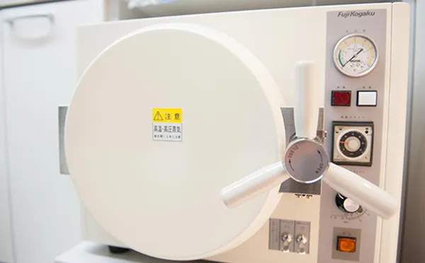 オートクレーブとは、使い捨てできない治療器具の滅菌を行う機械です。なお、使い捨てできる器具については、使い捨て製品(ディスポーザブル)を採用し、院内の感染防止を徹底しています。