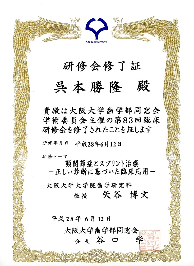 大阪大学歯学部同窓会臨床研修会に参加しました