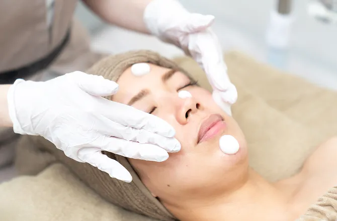 使用するのは、当院でも販売しているドクターズコスメのクレンジング剤で、ご自分では落としきれない皮脂や汚れを丁寧に取り除くことで、美容施術の効果をより高め、清潔な状態で施術を受けていただけます。