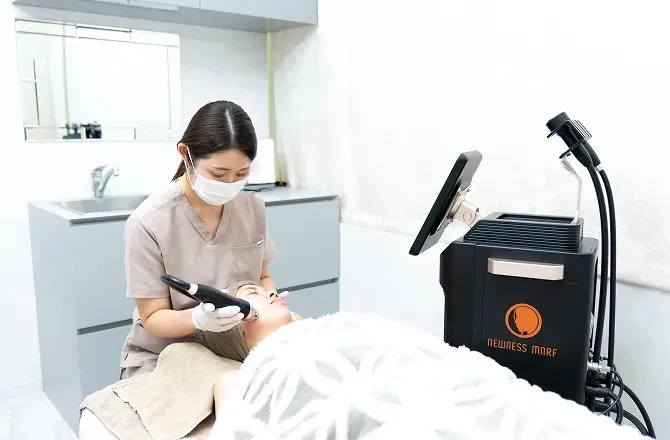 施術はすべて医師が担当し、肌状態を確認しながら丁寧に行います。痛みや刺激が不安な方はお声がけください。一人ひとりの肌に合わせて出力や施術方法を調整し、安心して受けていただけるよう配慮しています。
