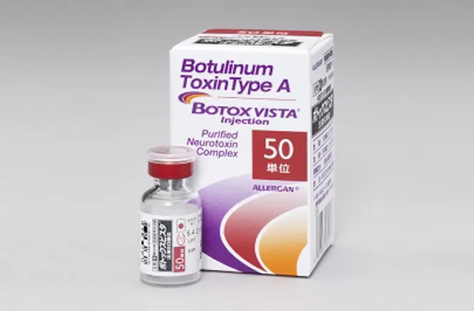 ボトックスビスタは、日本で唯一、厚生労働省に承認されたアメリカ・アラガン社製の筋弛緩剤です。厚労省で承認された施術部位は「眉間」と「目尻」の2箇所で、日本の基準に基づく高い有効性と安全性が評価されています。