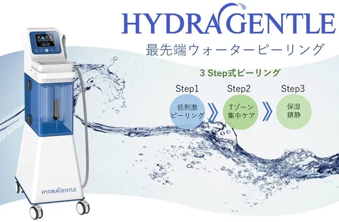 ハイドラジェントルは、特殊なチップからトルネード状の水流を肌に噴射しながら、クレンジング・ピーリング・美容液導入を同時に行う美肌施術です。毛穴の汚れや角質、余分な皮脂を取り除き、保湿と美容液導入を同時に行うことで、透明感とハリのある美肌を目指します。